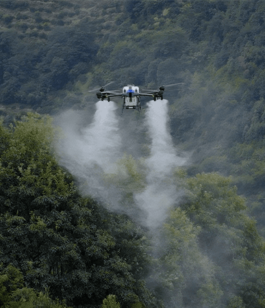 极目无人机以其90度的仿地能力,解决人所不能的山核桃飞防种植,解决了山核桃作物打药难,危险系数高的问题,同时也测试极目无人机在山核桃种植区的作业性能