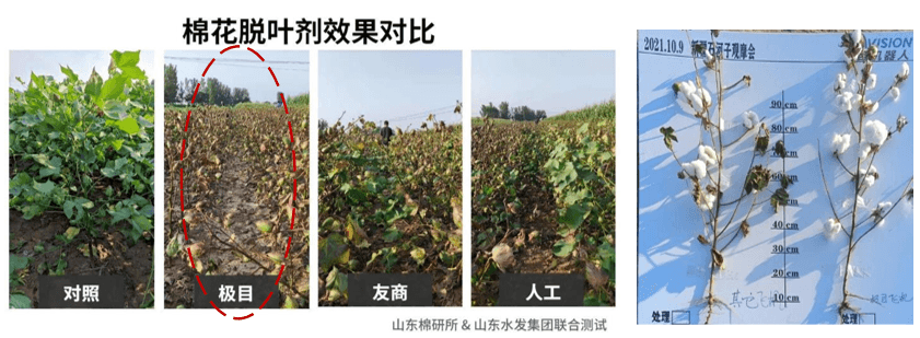 明确极目农业无人机、其他品牌农业无人机以及人工喷施脱叶剂三种不同施药方式下的脱叶效果,为棉花脱叶提供最佳施药方式。